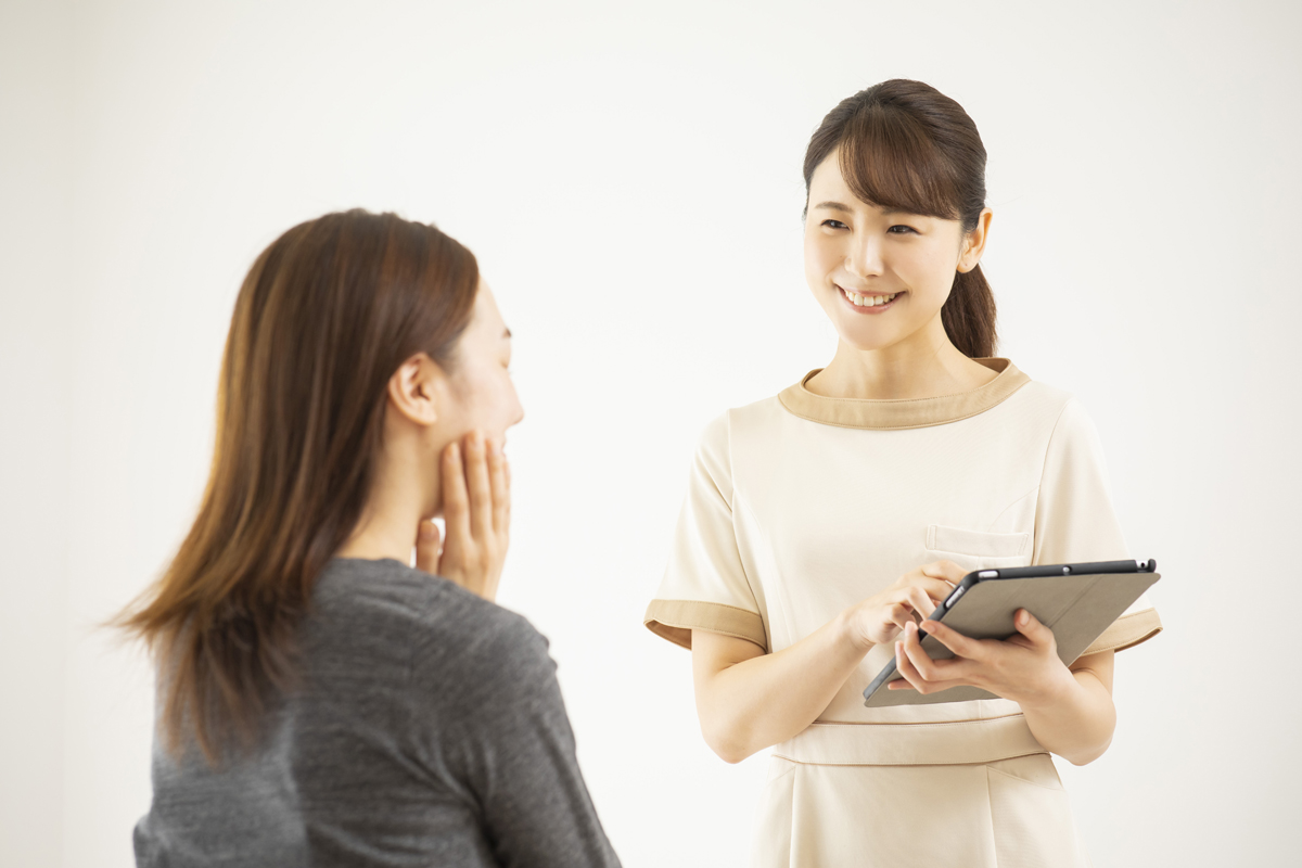 コースをお受けいただく前に現在の肌や身体の状態を確認するためお客様アンケートをもとにカウンセリングをさせていただきます。お客様の悩みや目的・体質に応じて本日のコース内容などをご案内いたします。